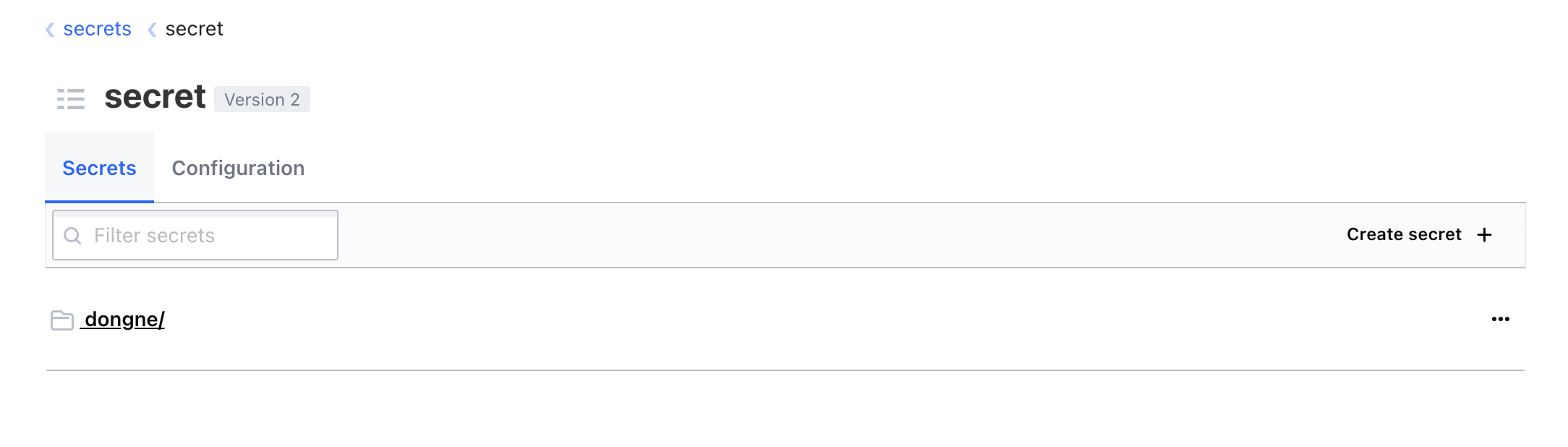 위에서 vault 설정할 때 vault에 저장해두었던 secret 데이터의 path는 secret/dongne/local 이었습니다.