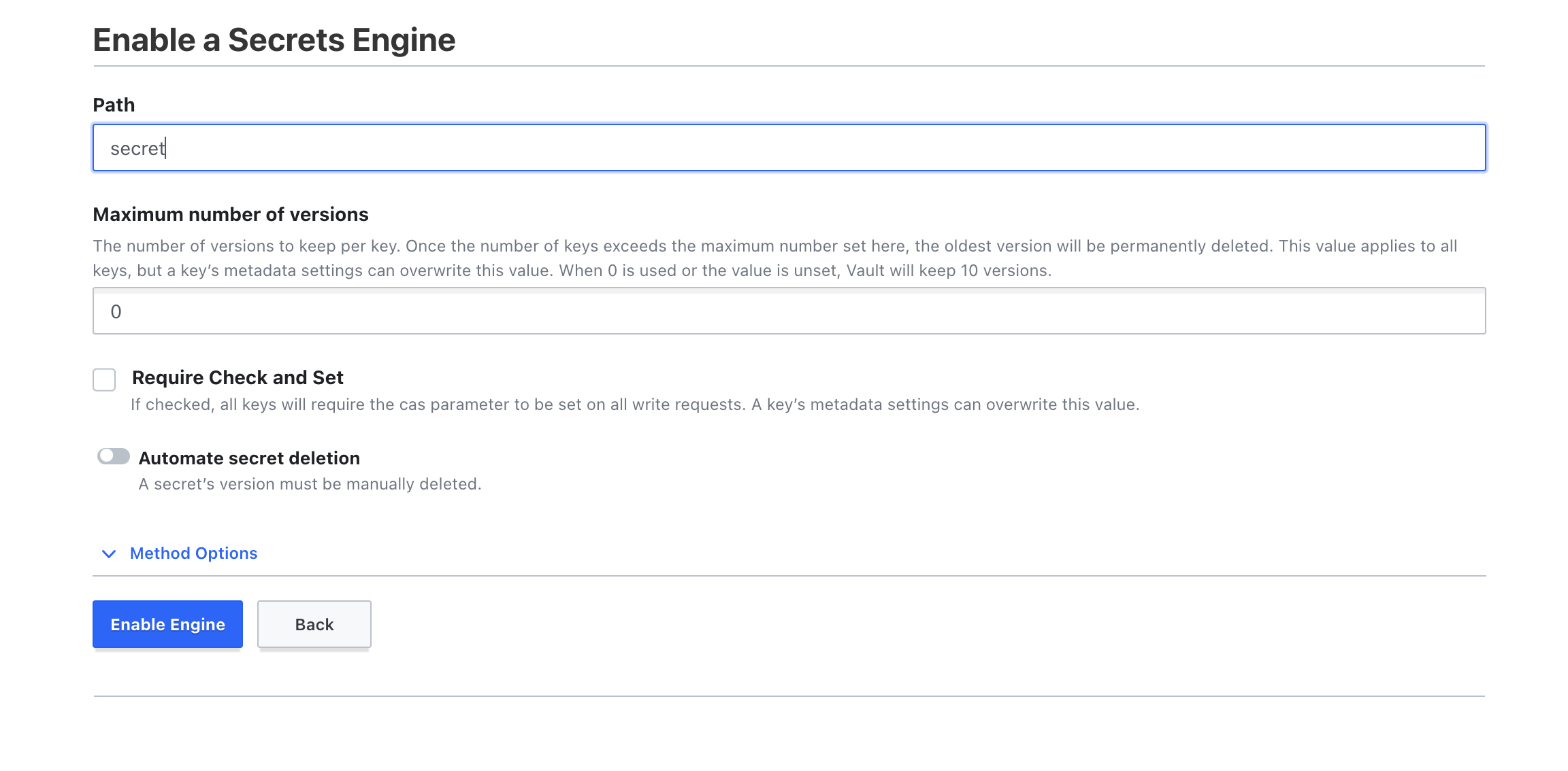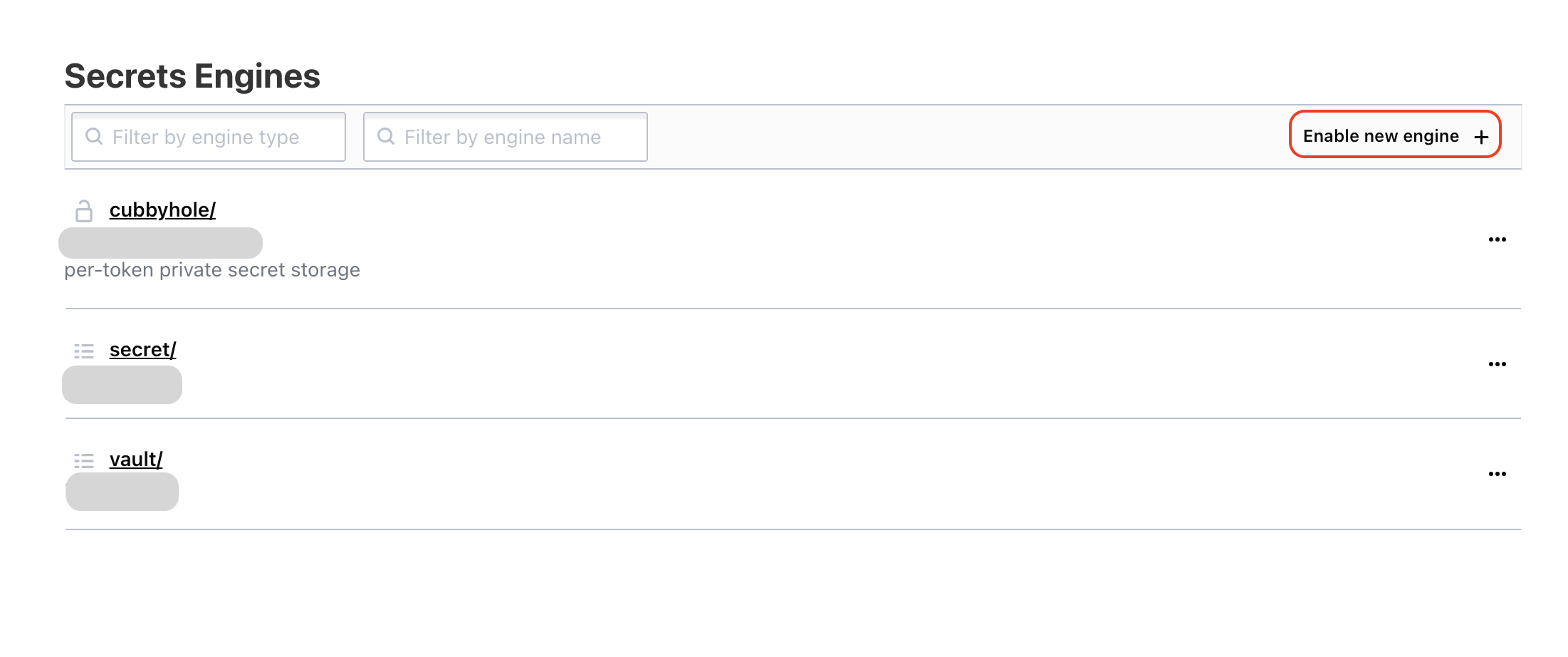 (저는 이미 secret 이라는 이름의 engine을 생성했는데요. 다른 이름으로 하셔도 됩니다.)