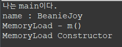 빨간 네모박스 부분이 MemoryLoad m = new MemoryLoad(); 이 실행되어 나온 결과부분이다. 여기서도 또 한 번 확인할 수 있었던 것은 static 초기화는 수많은 객체를 생성해도 단 한번만 실행된다는 것이다.