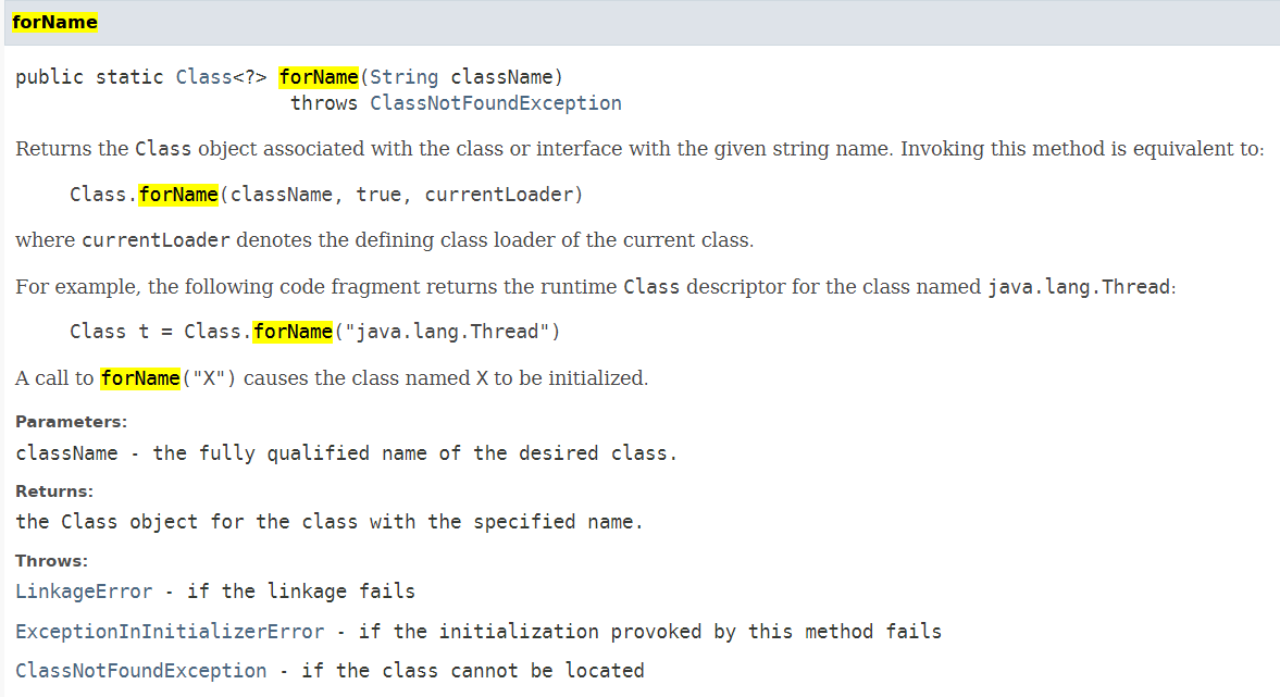 java document에서 Class.forName을 검색하면 나오는 내용이다. 반환값으로 Class를 return해주는데 이게 무슨 얘기인가 한 번 보자.