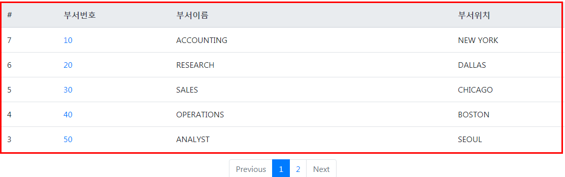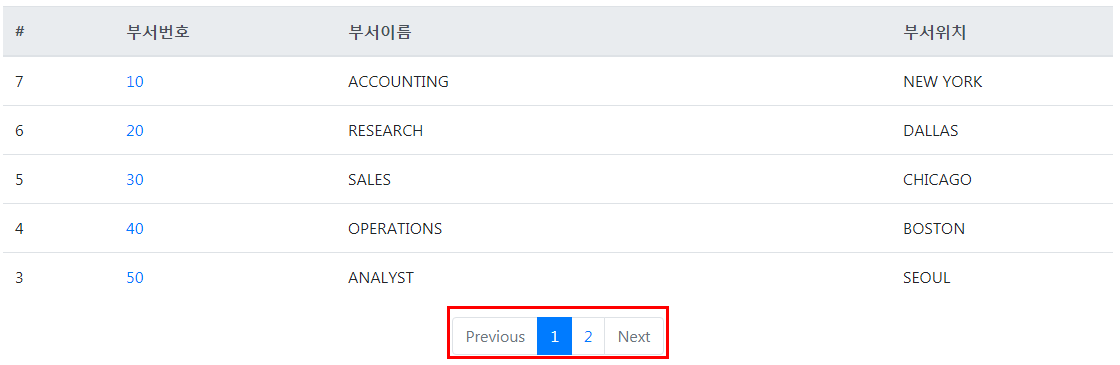 이제 한 페이지에 뽑아낼 데이터를 결정지었습니다. 그 다음은 그 아래 페이지번호를 매기는 페이징 처리를 해보겠습니다.