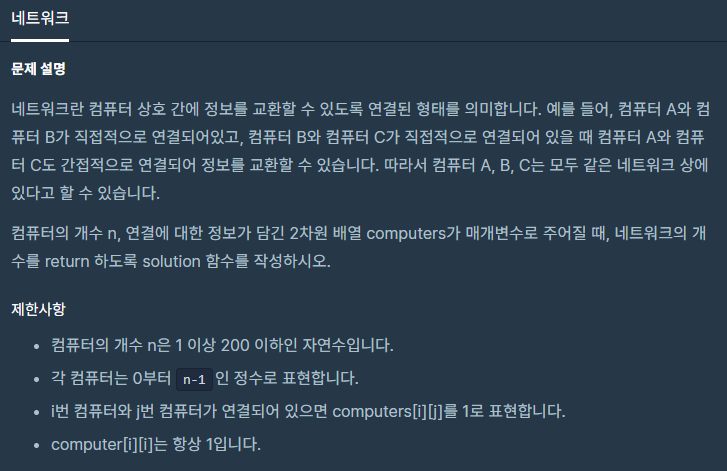 코딩테스트 연습 - 네트워크 | 프로그래머스