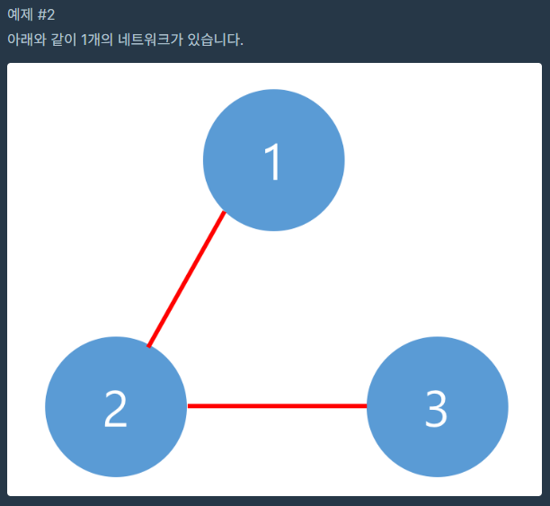 이 문제는 DFS를 통해서 해결하면 간단해 보입니다. DFS로 노드를 탐색한 후 dfs 재귀함수가 끝나는 시점에서 다른 노드들을 for문으로 탐색해보면서 방문 안했던 노드가 존재하는지 찾습니다. 만약 방문을 안한 노드가 있다면 또 다른 네트워크가 추가된다는 것을 알 수 있기에 이 기점으로 네트워크 수를 +1 해주면 됩니다.