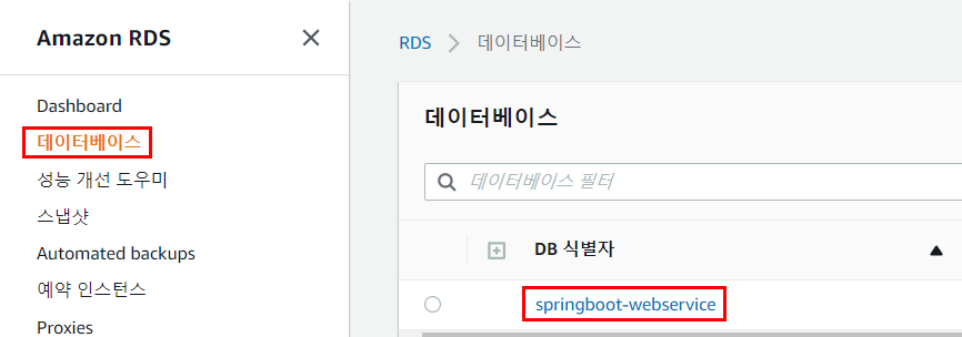 본인의 AWS RDS 상세정보 클릭