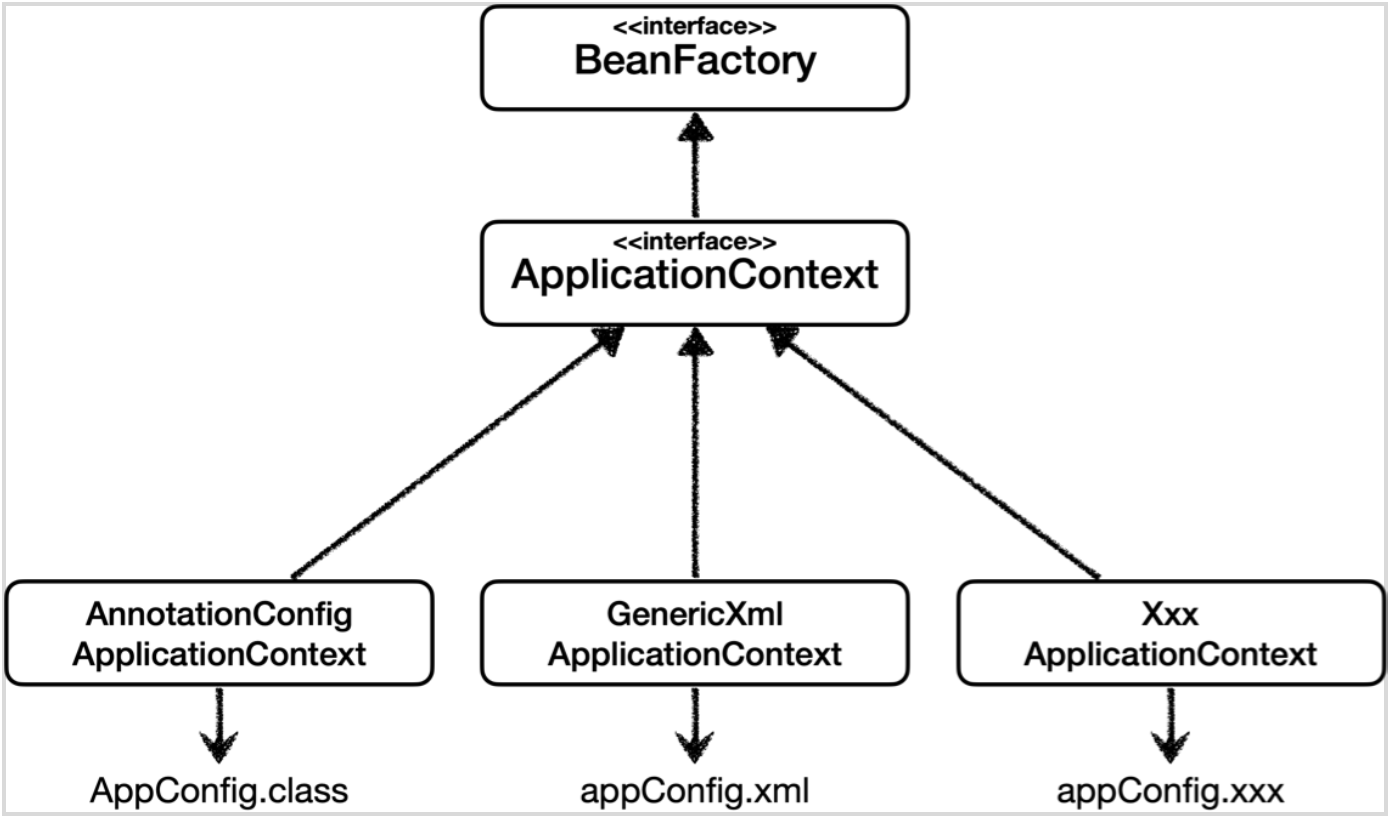 스프링 컨테이너로 사용되는 ApplicationContext는 사실 BeanFactory를 상속받고 있습니다. 즉, 스프링 컨테이너의 최상위 인터페이스가 바로 BeanFactory라 할 수 있습니다.