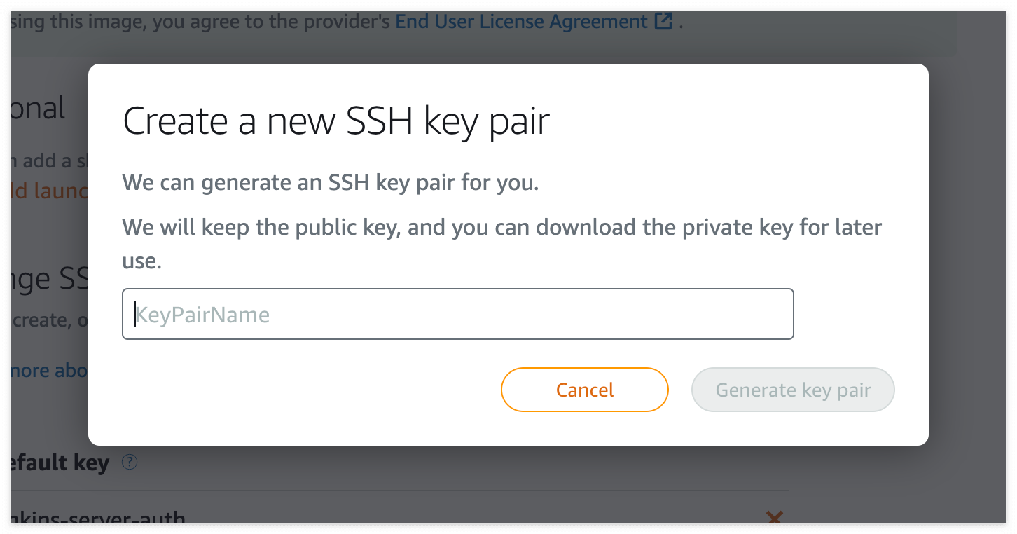 SSH 접속을 위한 key pair 설정이 있습니다. 저는 이미 생성했던 key pair가 있지만 처음에는 아무것도 없을 것입니다. create new를 통해 key pair를 생성합니다.